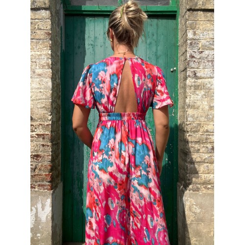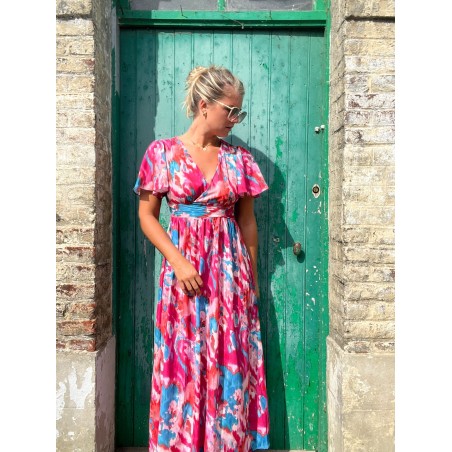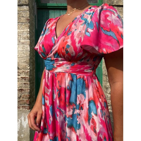 élastiqué à la taille, ouverte dans le dos, liserés argent dans la robe