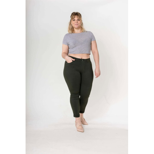 Jeans slim coloré kaki taille haute avec bouton et fermeture éclair, ultra confort