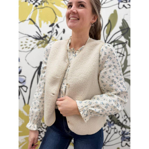 Gilet sans manches effet bouclette beige avec gros boutons à l'avant , se pose parfaitement sur un pull fin, une blouse, un chemisier ou encore une...