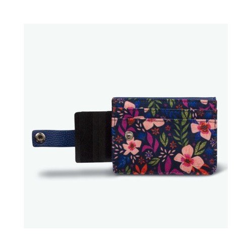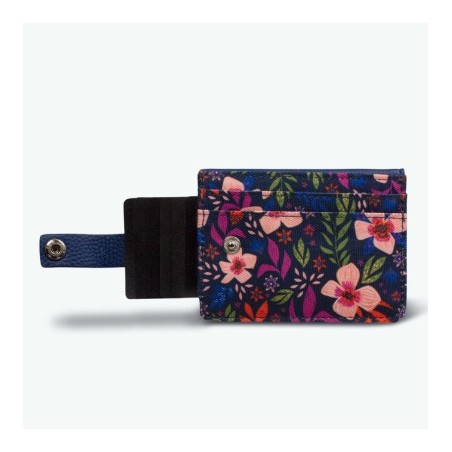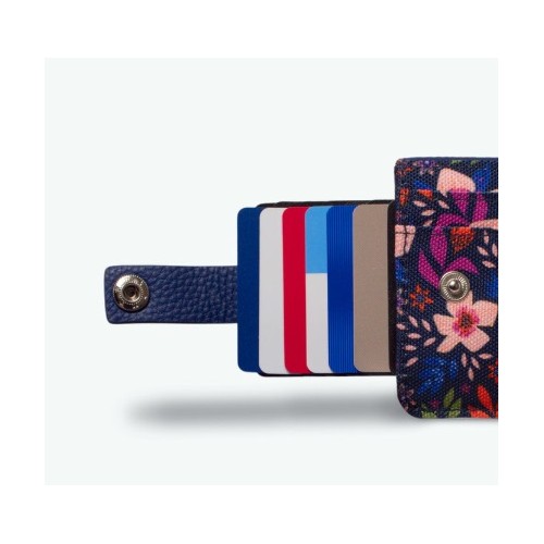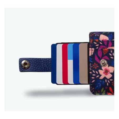 Porte-cartes extra fin. Un système déroulant pour vos cartes fermé par un bouton pression, une poche avec fermeture magnétique pour y glisser monnaie et billets pliés, et deux rangements plaqués pour y glisser carte d'identité, permis ou autres!