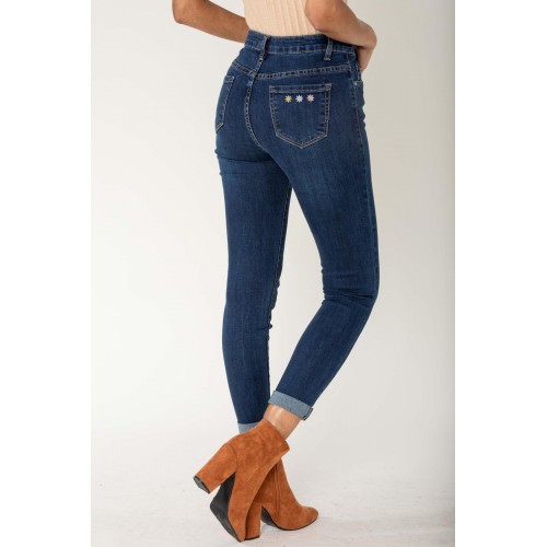 jean slim fleurs