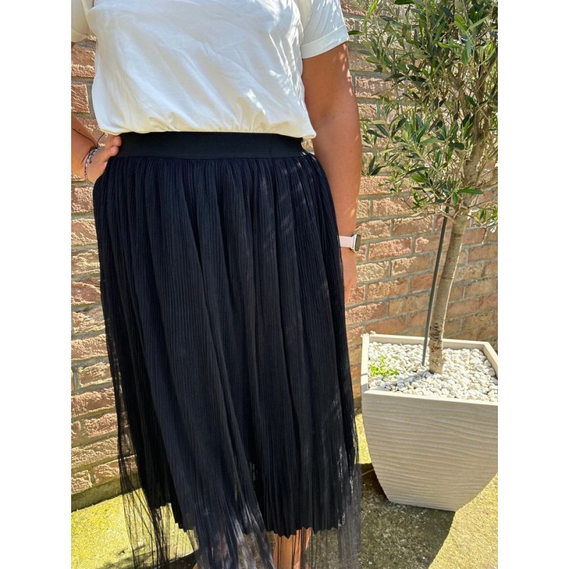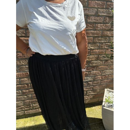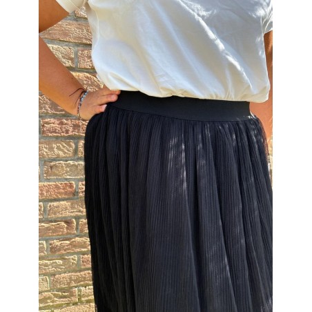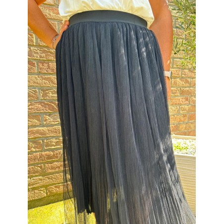 Jupe plissée élastique noire doublée avec l'intérieur effet brillant
