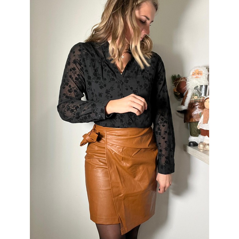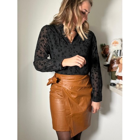 Jupe effet porte feuille de couleur Camel, en effet simili cuir.