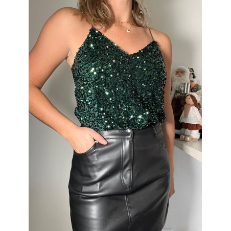 Débardeur à sequins bretelles réglables entièrement doublé