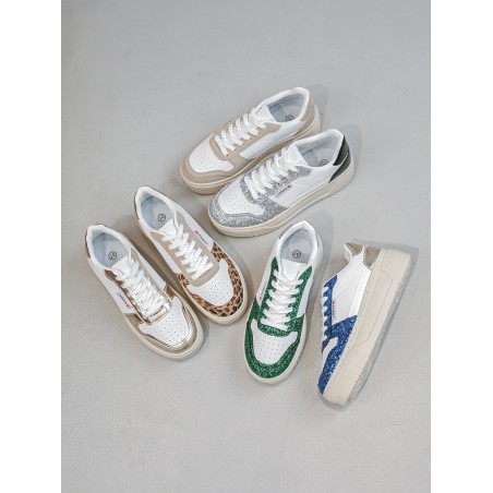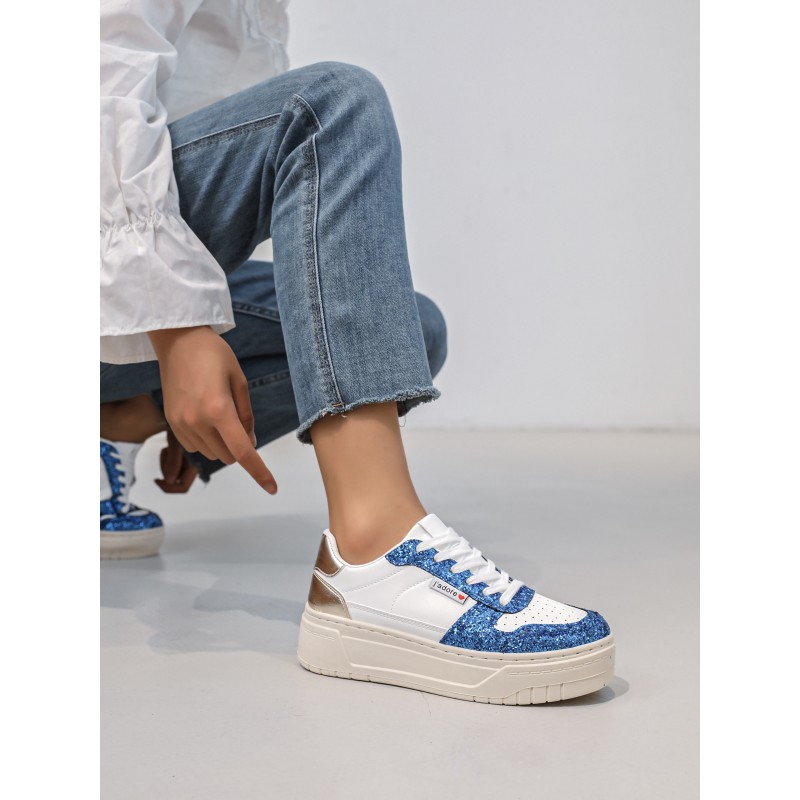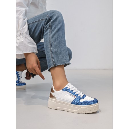 Baskets à plateformes, avec paillettes de couleur bleu et arrière or
