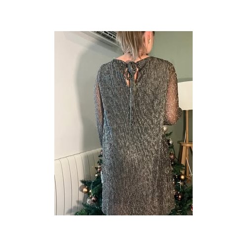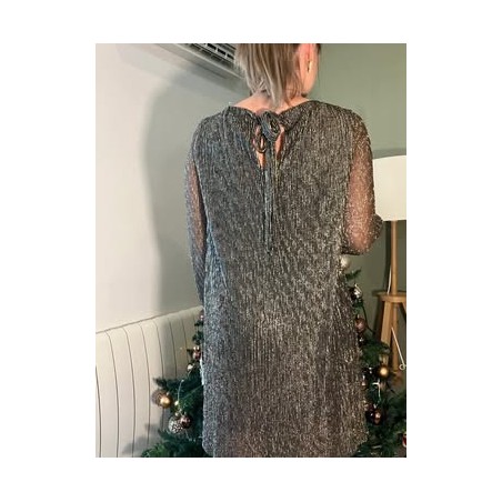 Reliefs brillants et noeud à l'arrière pour refermer la robe