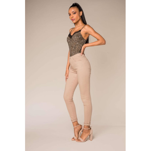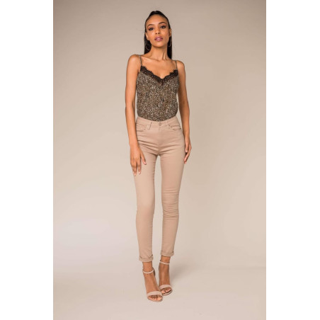 Jean slim taupe taille haute