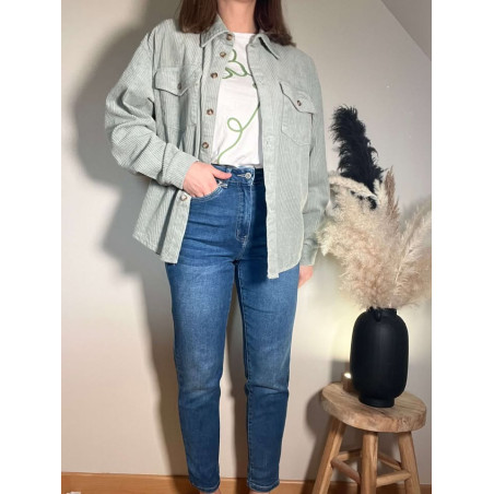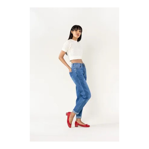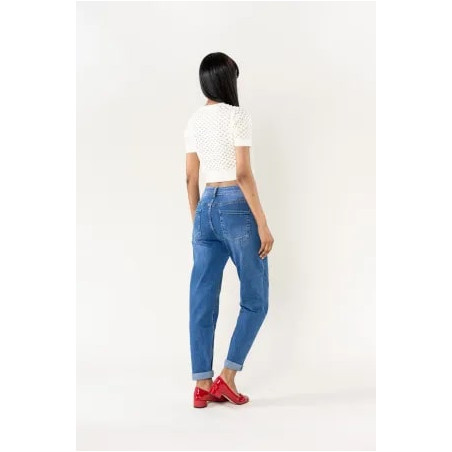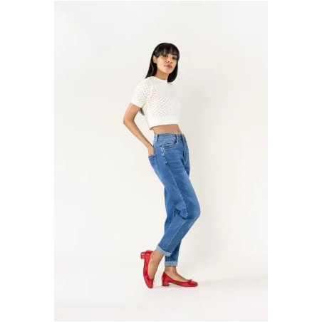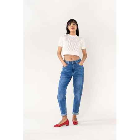 Jean brut coupe Mom, coupe droite en 7/8ème , taille haute