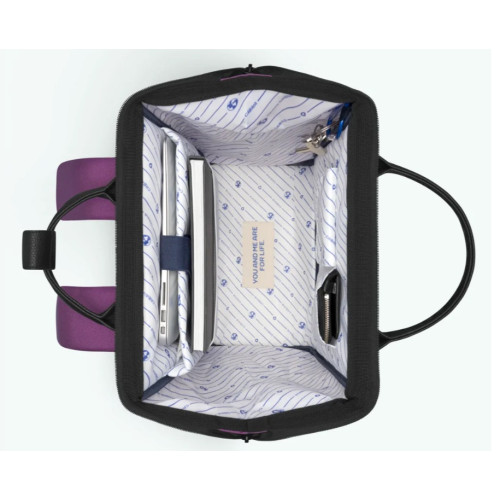 Ce sac est accompagné de 2 pochettes interchangeables : violet (Singapore) et violet à motifs (Le Flon)