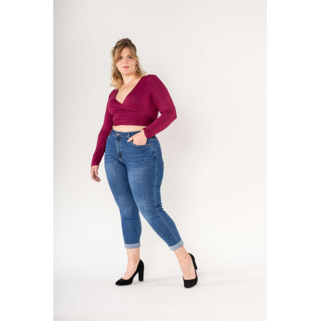 Mom belle taille taille haute avec fermeture éclair et bouton , hyper confortable