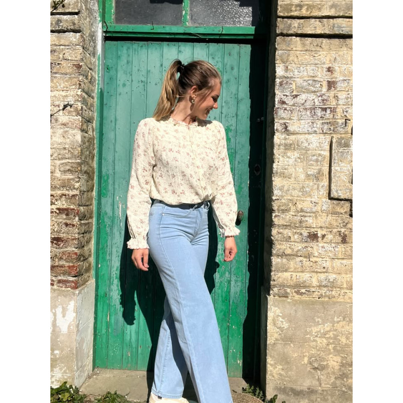 Jeans coupe wide leg avec détails d'un coeur rouge sur la poche arrière droite