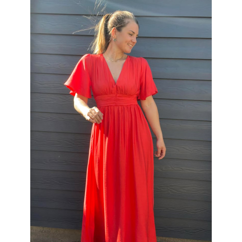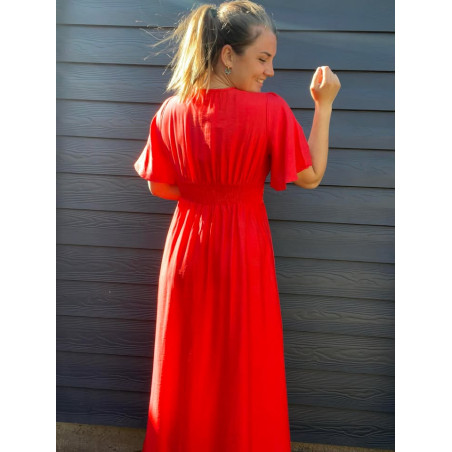 Robe longue col V smokée à l'arrière