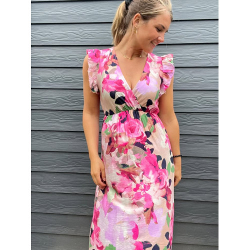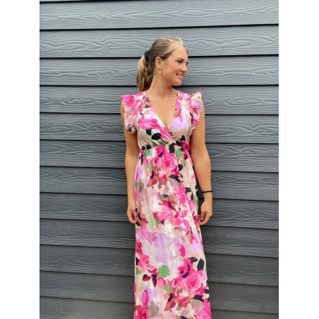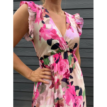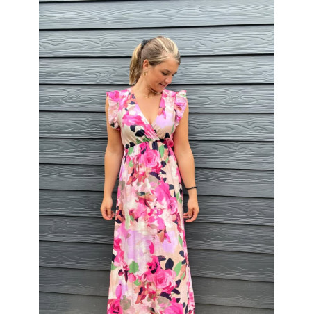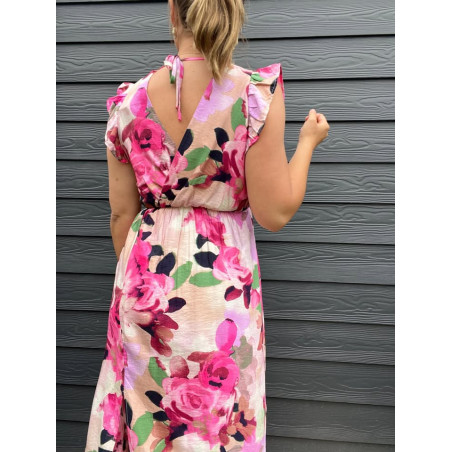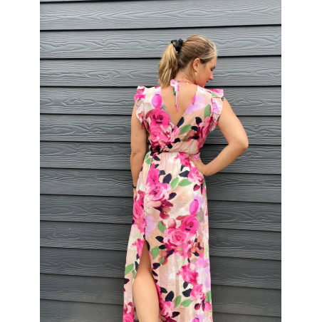 Robe longue col V à l'avant ainsi qu'au dos avec possibilité de resserrer