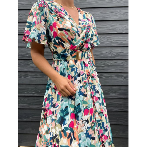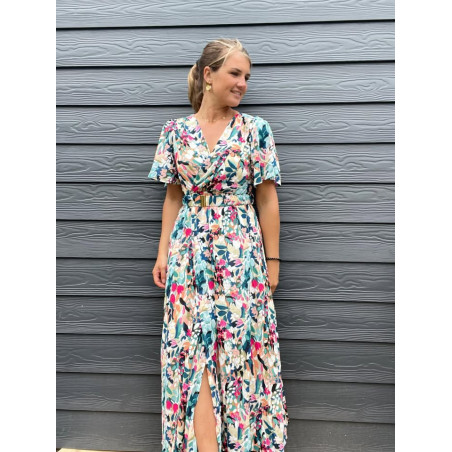 légère fente sur l'avant et ceinture en dessous de la poitrine
