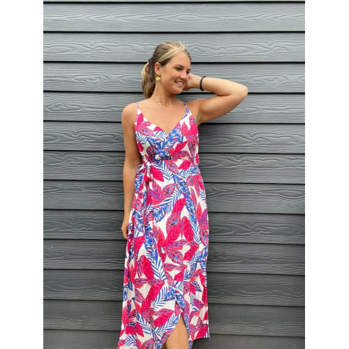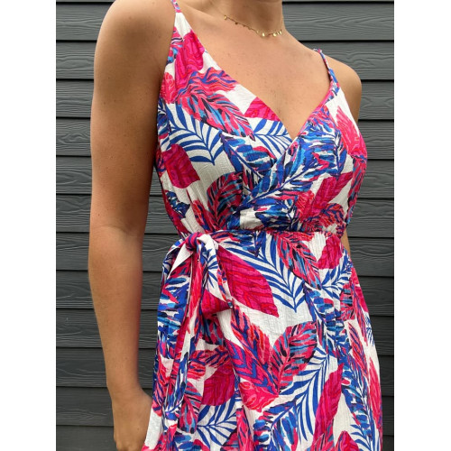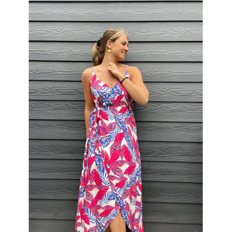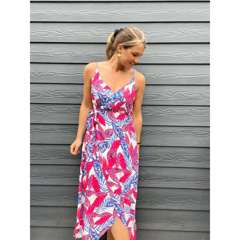 Robe longue fines bretelles réglables en coupe portefeuille