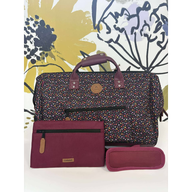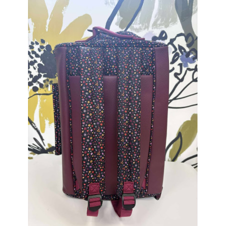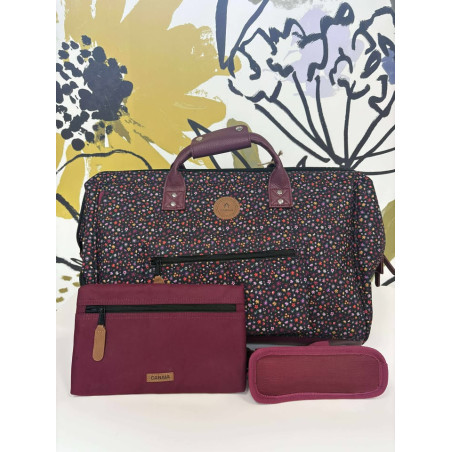 Ce sac est accompagné de 2 pochettes interchangeables : bordeaux unie (Place de la Palud) + violette à motifs (Ouchy)