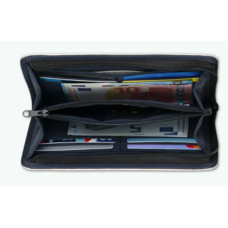Compagnon Wallet taille L Cabaïa, compartiment cartes et espèces à l'intérieur, se ferme à l'aide d'une fermeture éclair.