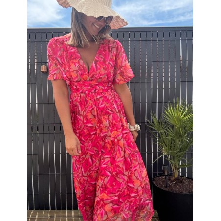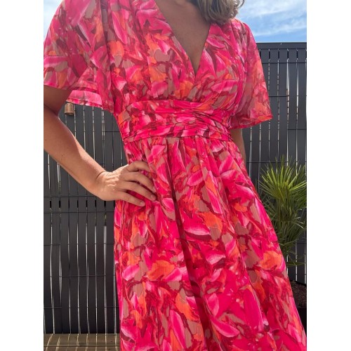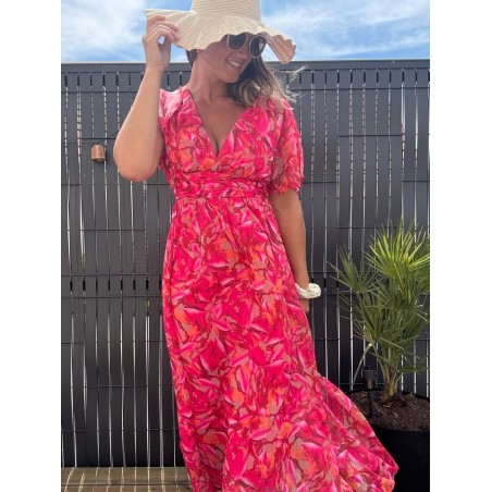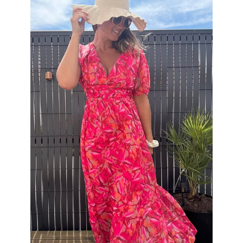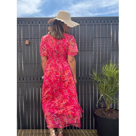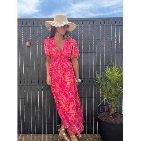 Robe longue smokée dans le dos en col V, doublée et manches courtes