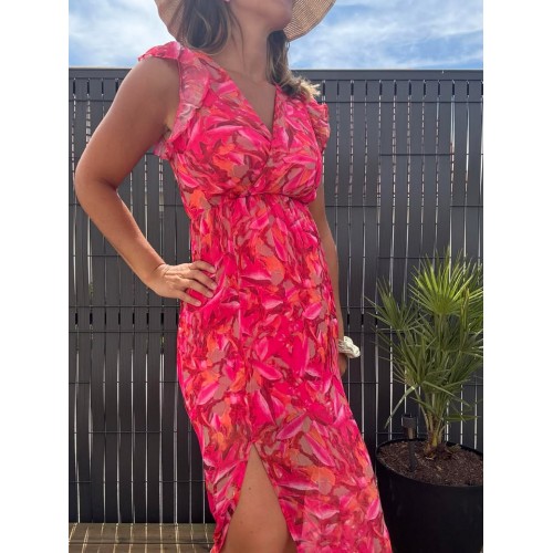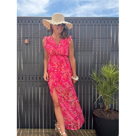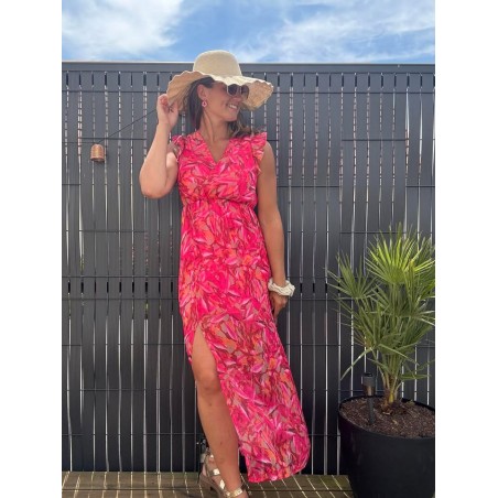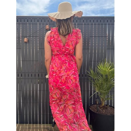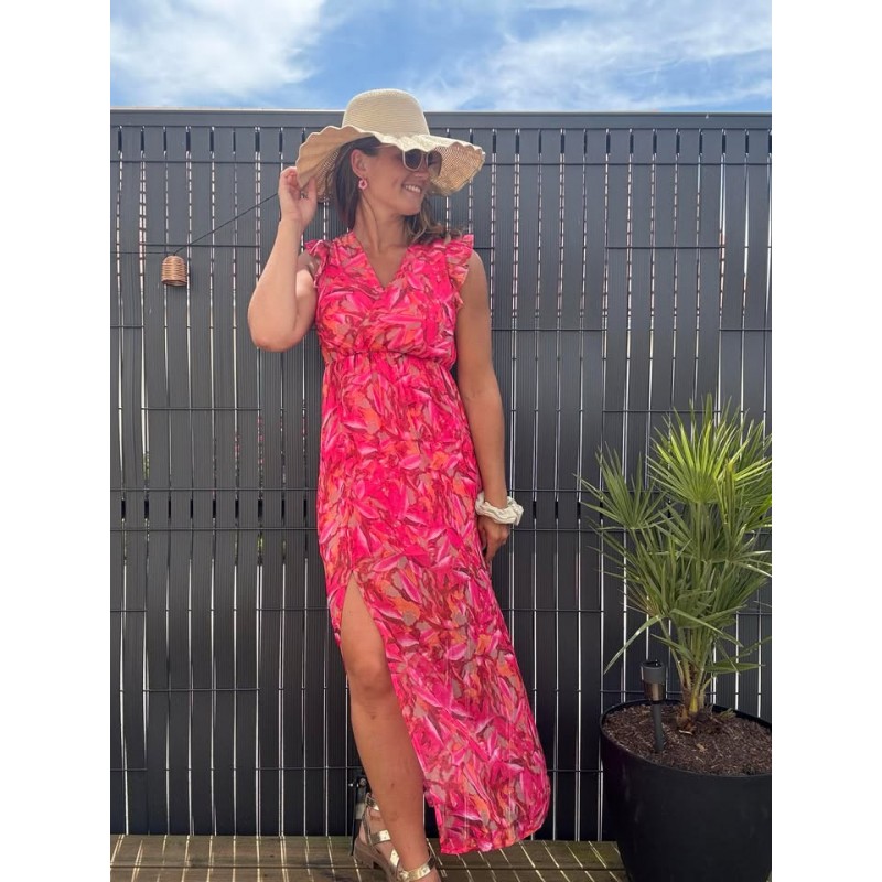 Robe longue manches débardeurs avec volants, élastique sous la poitrine ainsi que doublure