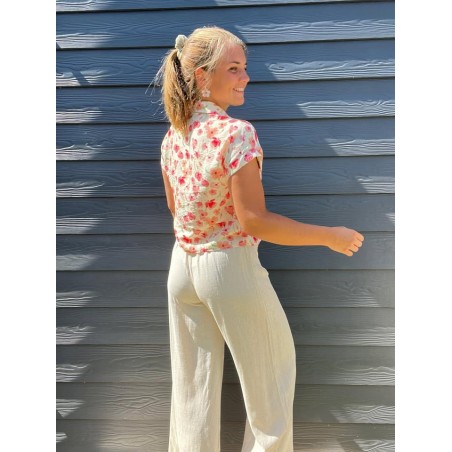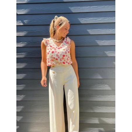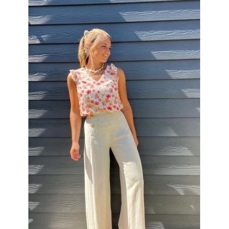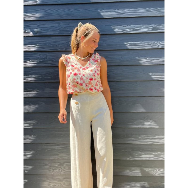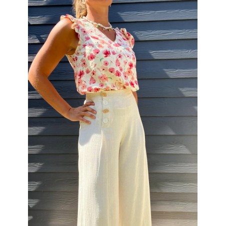 Pantalon élastiqué coupe droite avec détails 4 boutons à l'avant