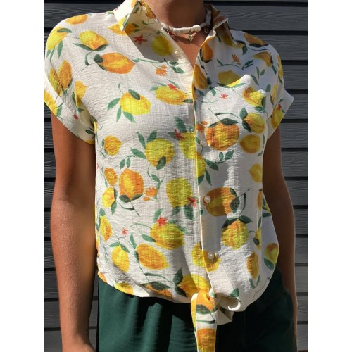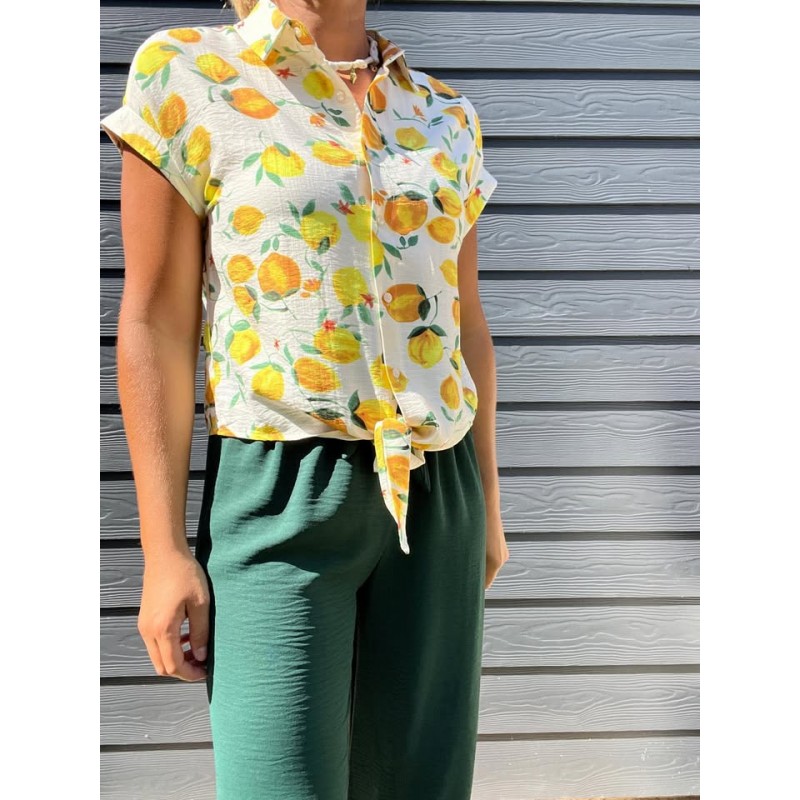 Chemisier manches courtes avec boutons de haut en bas, noeud sur le bas