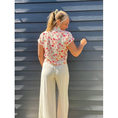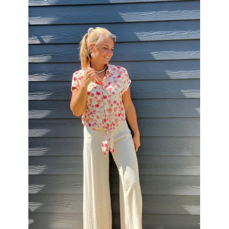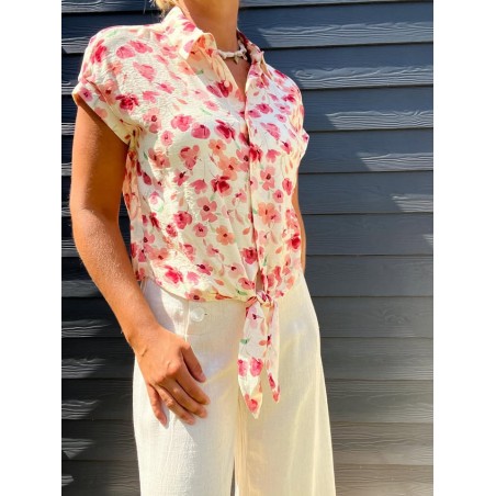 Chemisier manches courtes avec boutons de haut en bas, noeud sur le bas