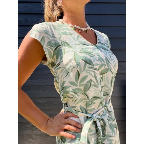 Robe coupe droite col V avec liseré doré