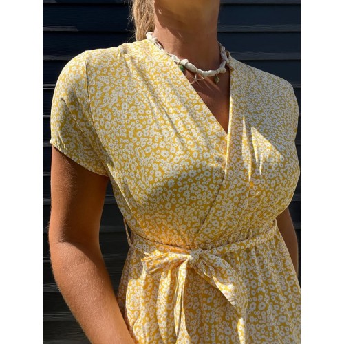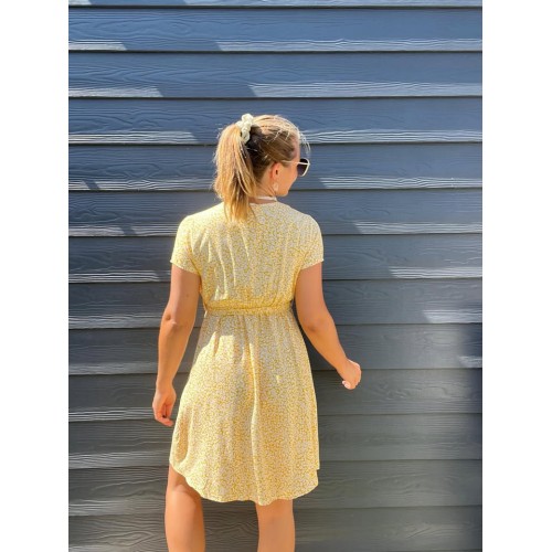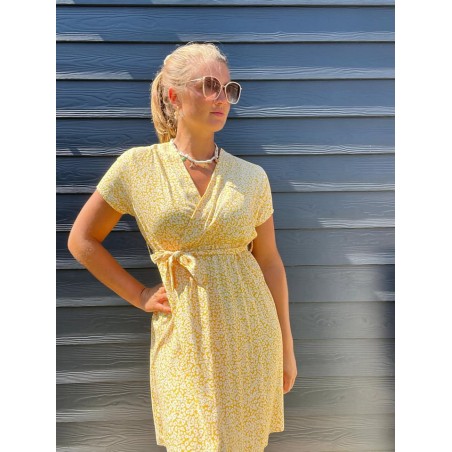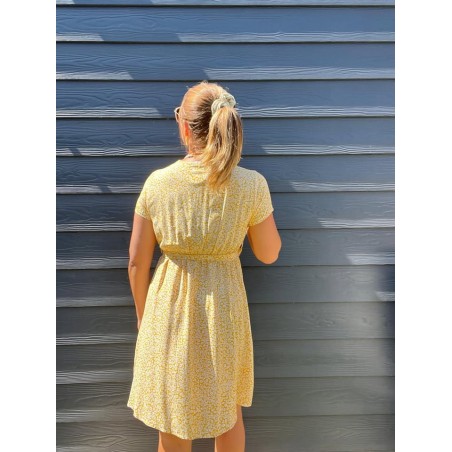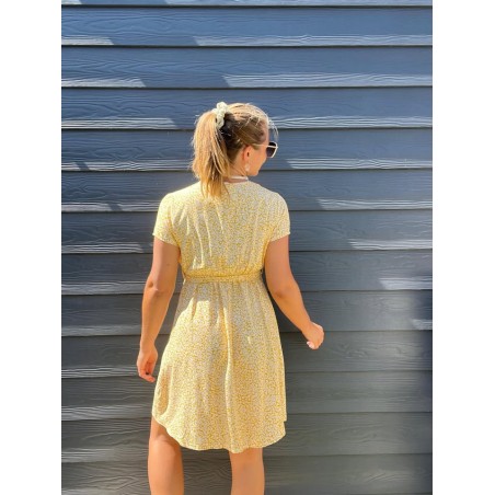 Robe courte liberty en col V avec ceinture élastiqué sous la poitrine
