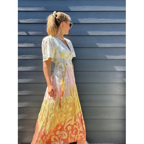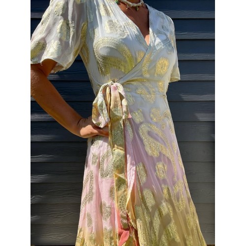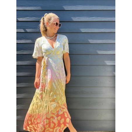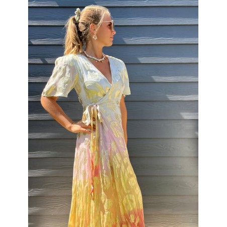 Robe longue portefeuille doublée jusqu'au dessus du genou avec ceinture à l'avant