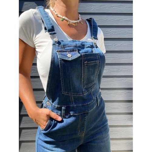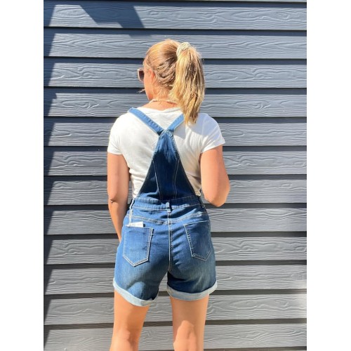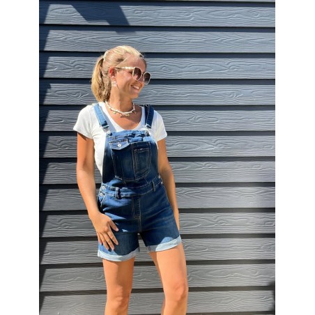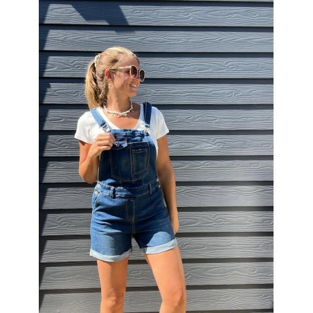 Salopette short en jeans avec poches de chaque côté et à l'arrière