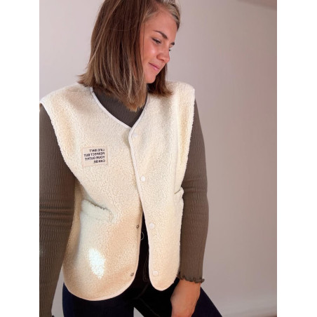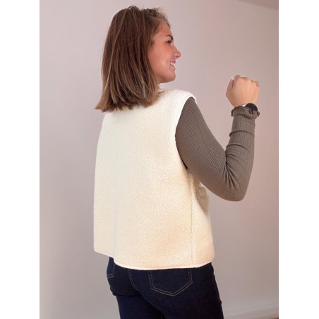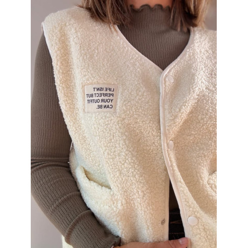 Gilet sans manches effet bouclette avec poches de chaque côté, boutons avec pression pour refermer