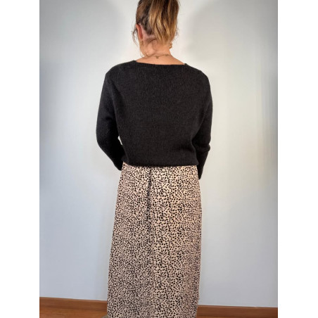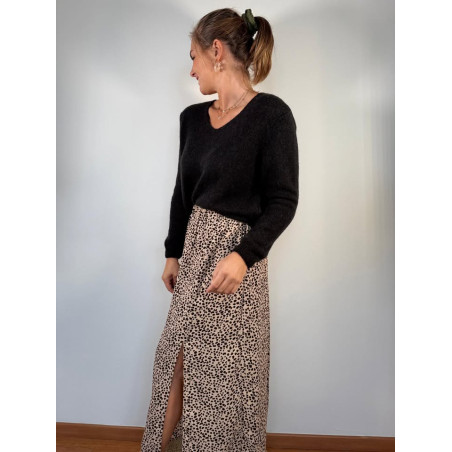 Jupe longue élastiquée avec fente sur le côté et doublure jusqu'au dessus du genou