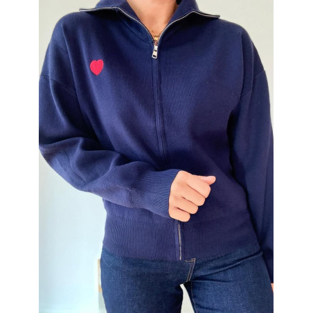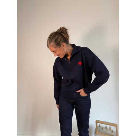 Gilet zip sans capuche avec détails d'un petit coeur brodé sur le devant