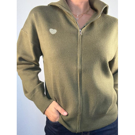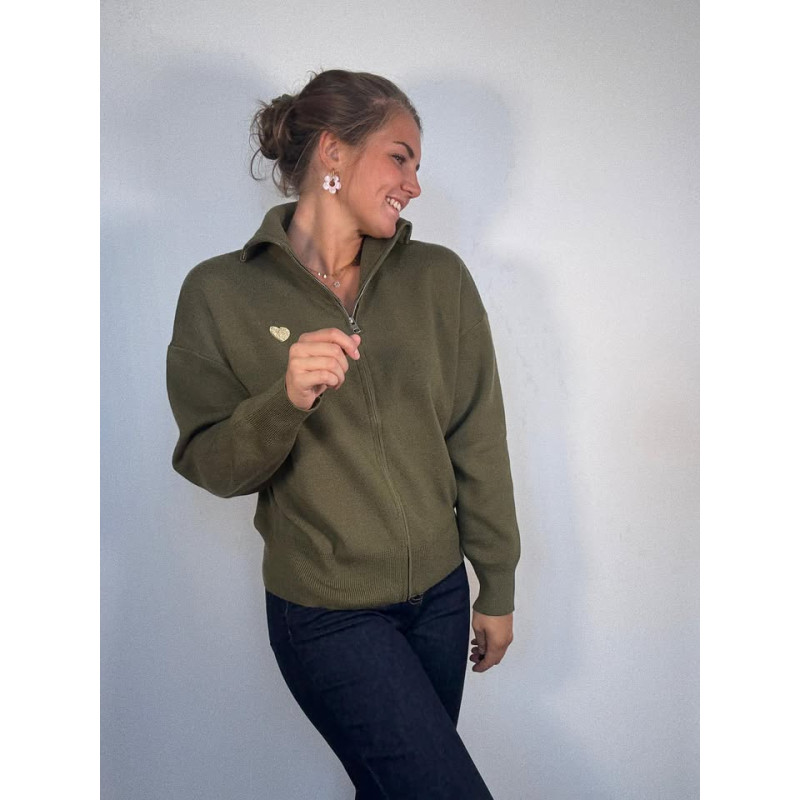 Gilet zip sans capuche avec détails d'un petit coeur brodé sur le devant