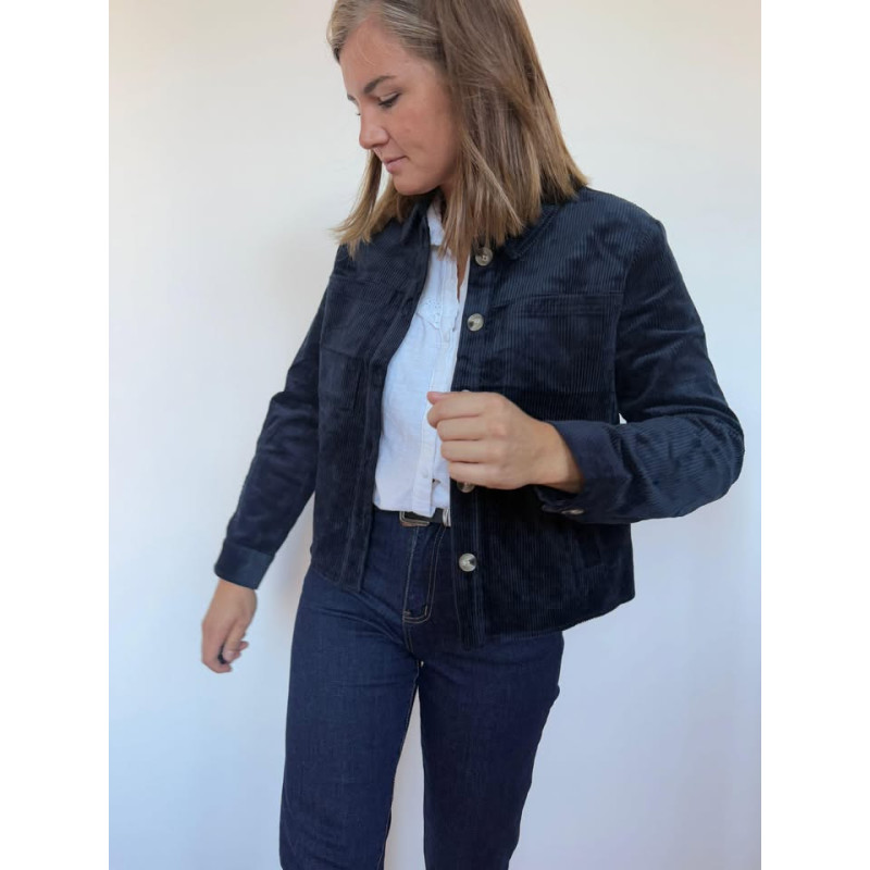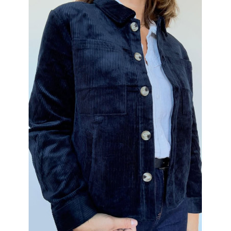 Veste oversize effet velours bleu marine avec poches de chaque côté et boutons sur le devant