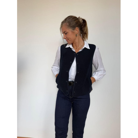 Veste bouclette avec poches de chaque côté, pièce que l'on peut associer au dessus d'une blouse, d'un col roulé,...