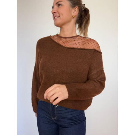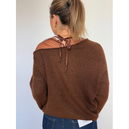 Pull col rond transparent au niveau de l'épaule, noeud à l'arrière au niveau de la nuque