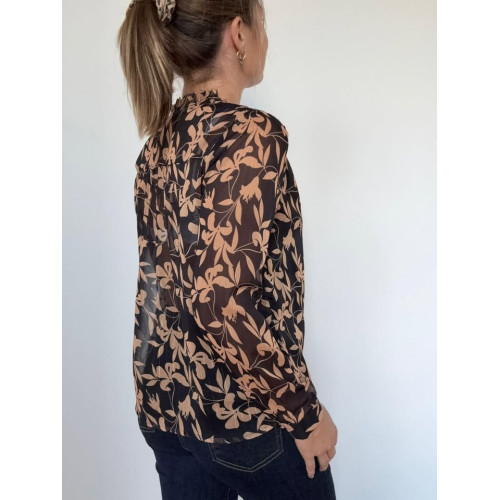 Blouse à motifs avec liseré doré et boutons ainsi que sur doublure sur l'avant