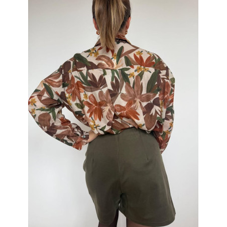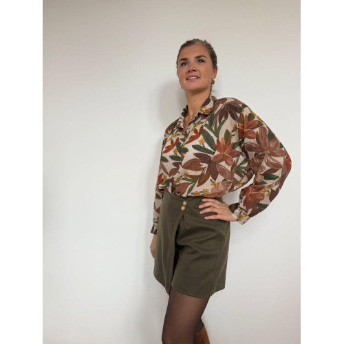 Jupe short effet suédine avec deux petits boutons et fermeture éclaire à l'arrière