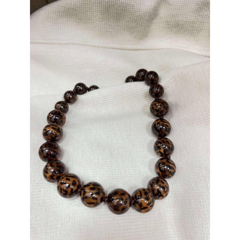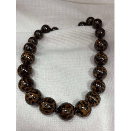 Collier grosses perles motifs léopard en acier inoxydable avec chaîne réglable