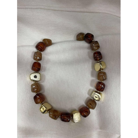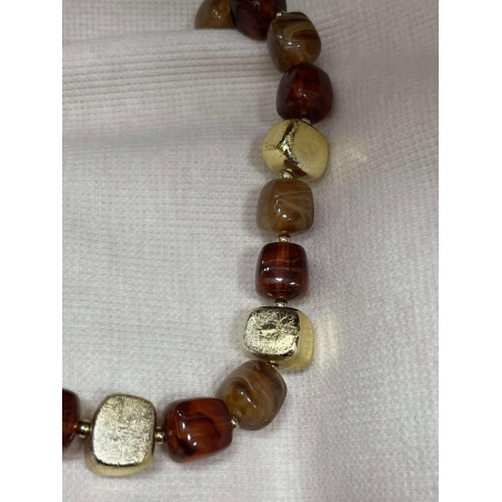 Collier en acier inoxydable dans les tons terracota, camel et doré avec chaîne réglable