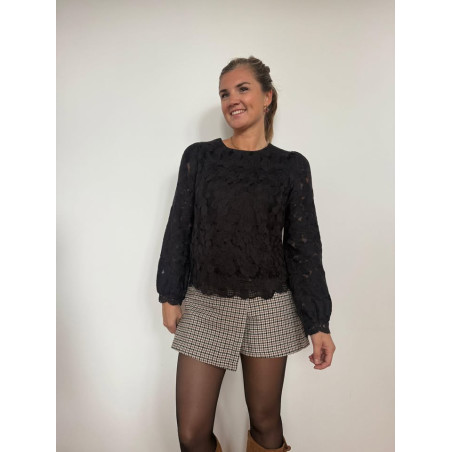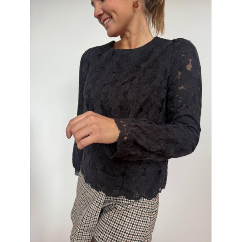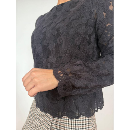 Blouse en dentelle doublée sur l'avant et le dos, transparent aux bras