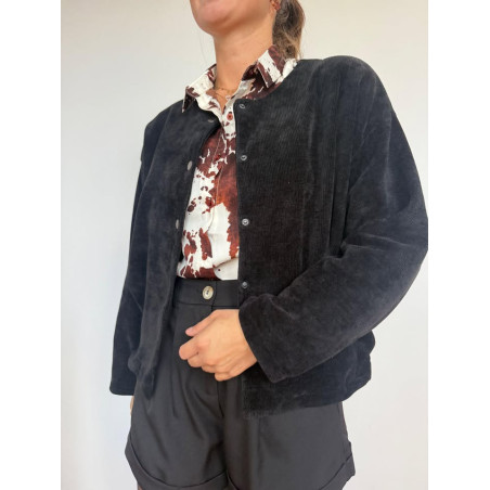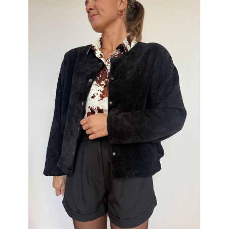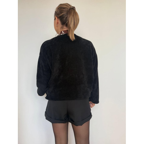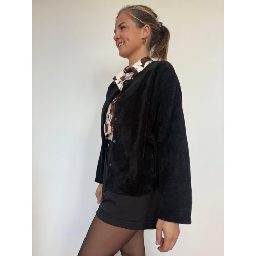 Veste douce avec pressions qui n'a pas de poches, resserré sur le bas