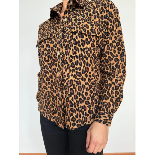 Surchemise velours léopard que l'on peut porter ouverte ou fermer