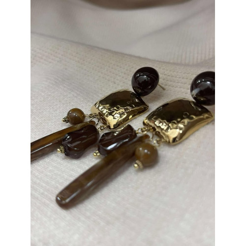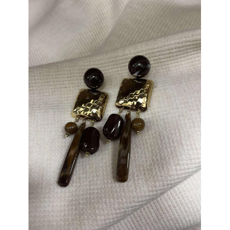 Boucles d'oreilles en acier inoxydable doré et marron avec fermoir