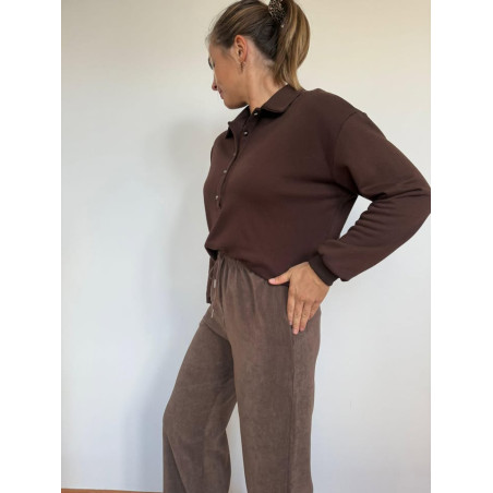 Pantalon élastique matière douce avec cordon mais n'a pas de poches