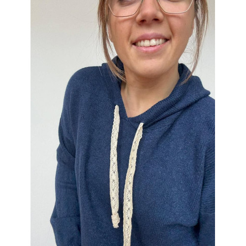 Pull à capuche avec cordons en dentelle