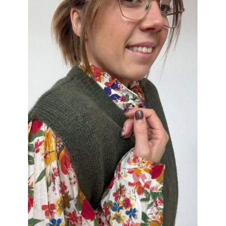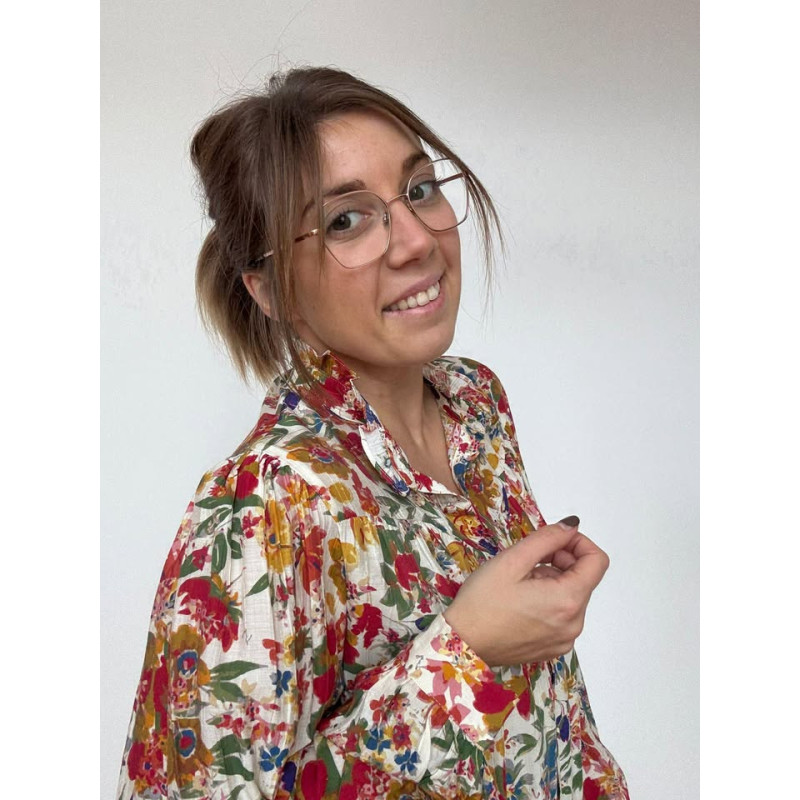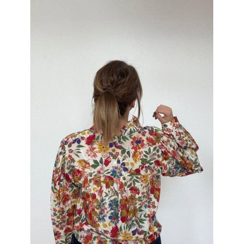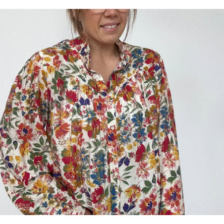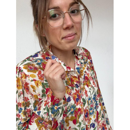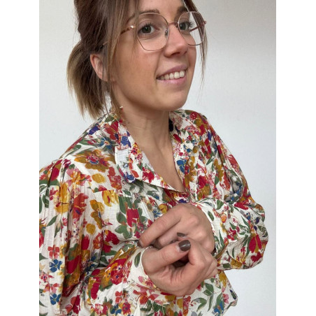 Blouse fleuries avec boutons de haut en bas, légèrement transparent et coupe oversize