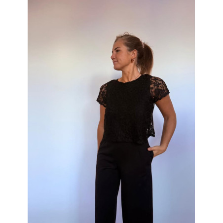 Combi pantalon 2 en 1 avec top en dentelle, doublée
