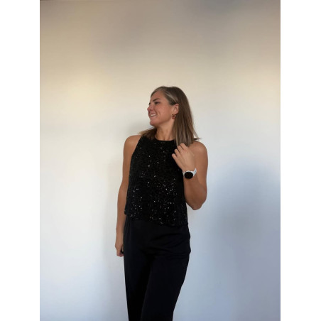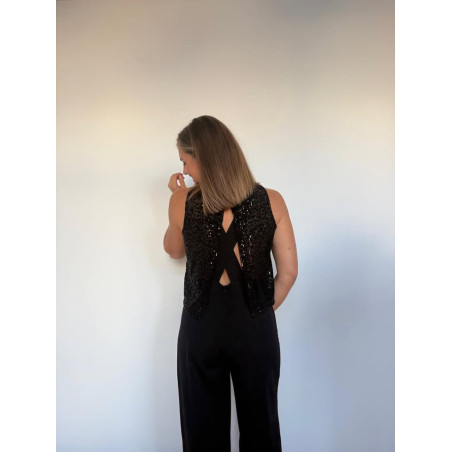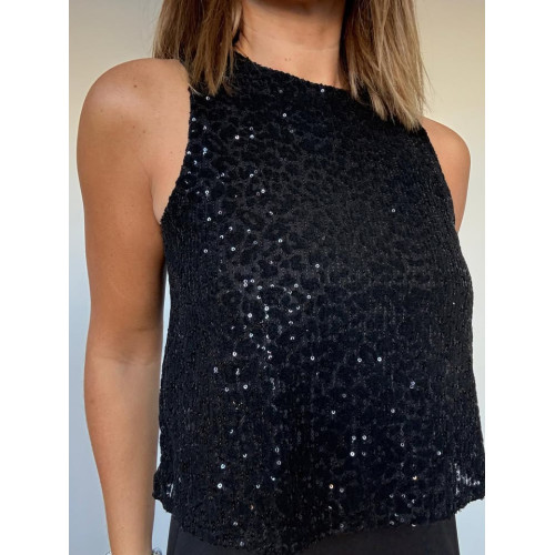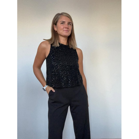 Combi pantalon 2 en 1 avec top sequins motifs léopard